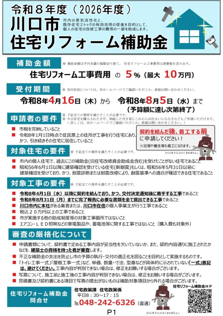 川口市住宅リフォーム補助金【受付期間】のお知らせ