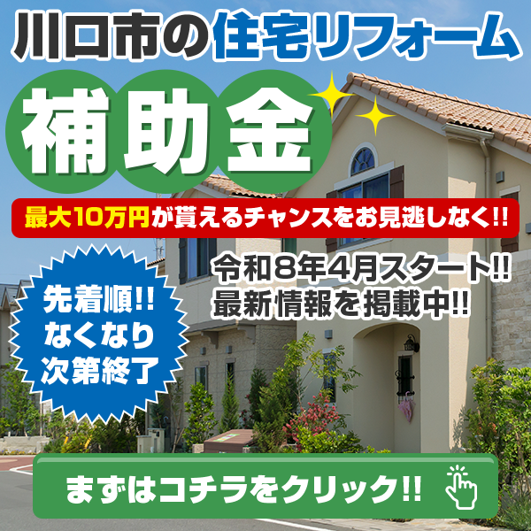 川口市住宅リフォーム補助金【受付期間】のお知らせ 前期【2026年4月16日(木)から8月5日(水)まで】 *予算額に達し次第受付終了!! *先着順なので申請予定の方は早めの申請をお勧め致します!! 【助成金額】税込み20万円以上のリフォーム工事を行う場合、工事費用の5%(最大10万円) ※千円未満の端数は切り捨て 弊社は申請から完了報告までお手伝いさせて頂きますので、お気軽にお問い合わせください。 無理な営業は致しません! tel:0120-36-2828 LINEのお問い合わせはこちら メールでのお問い合わせはこちらですお問い合わせフォームご相談お見積り診断は無料!お気軽にご連絡下さい!! 他社にはない、本物のサービス、本物の技術力、本物の想いをお客様に安心な塗装工事を届けたい 笑顔になっていただきたいと思います。 (2026.04.01 更新) 詳しく見る 助成金スタッフブログ