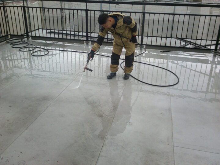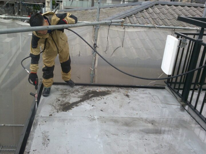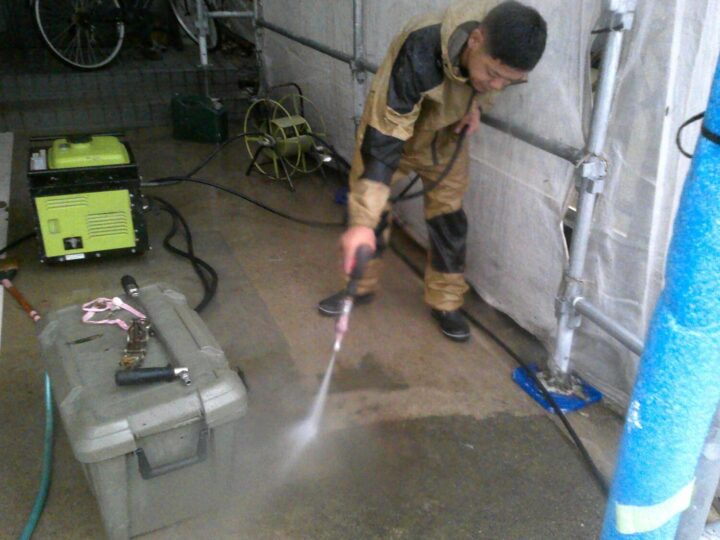 ゴミやコケなどといった物を高圧洗浄機を使って洗い流す作業です高圧洗浄