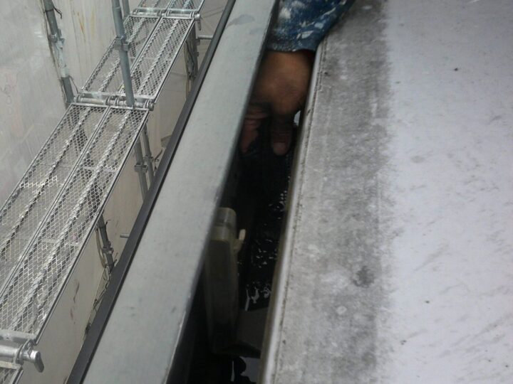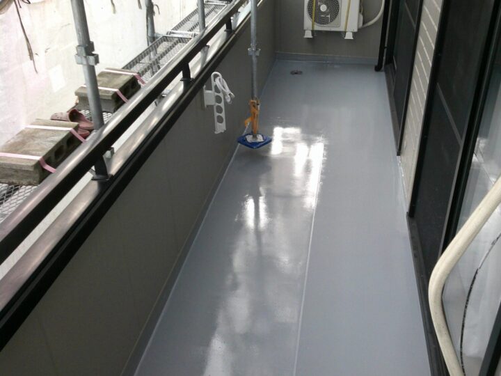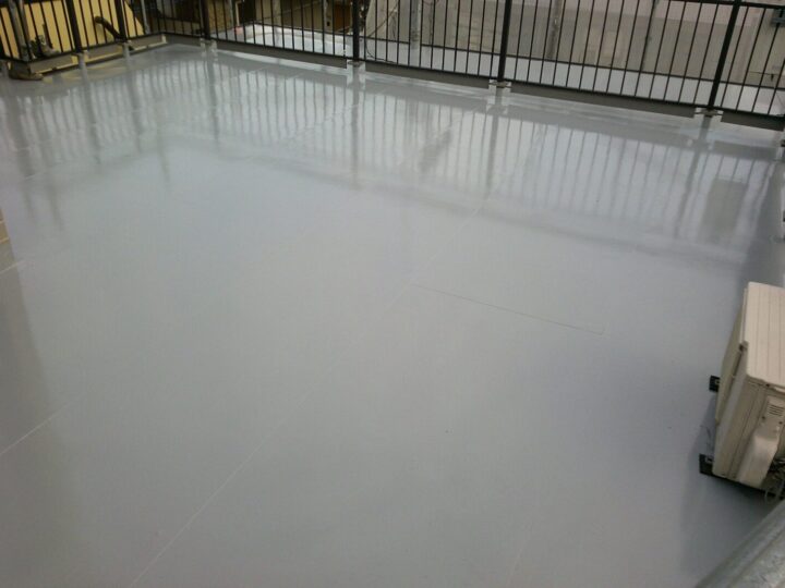 一般の屋上防水、ベランダ、側溝、ひさしなど、幅広く使用できます屋上防水中塗り 1層目