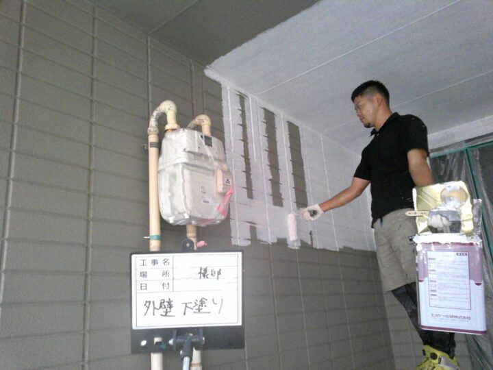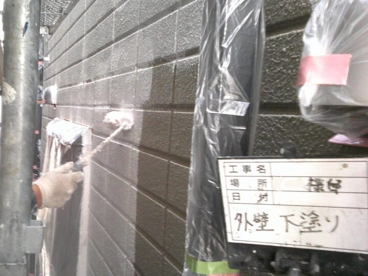 下塗りは外壁塗装の重要な工程です、主な役割は下地と上塗りする塗料との接着するためです外壁下塗り