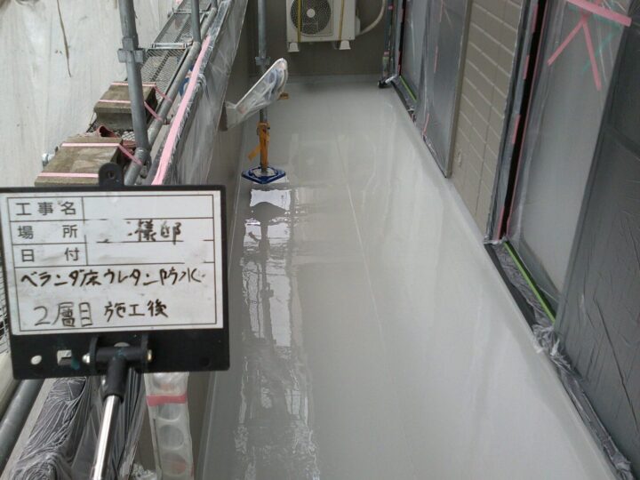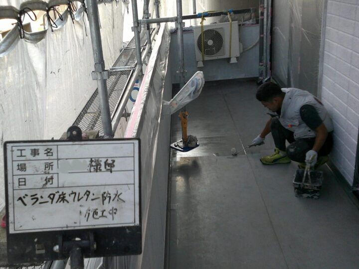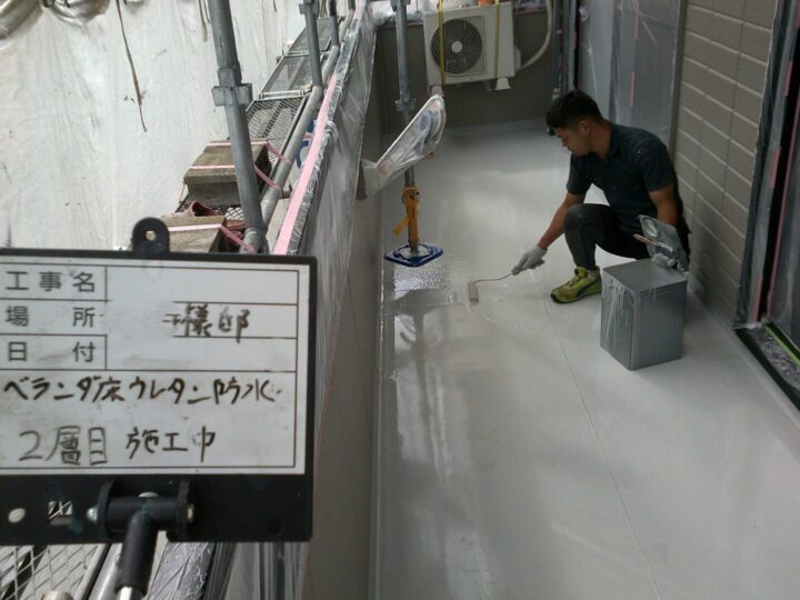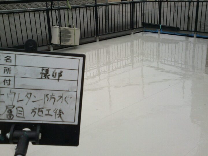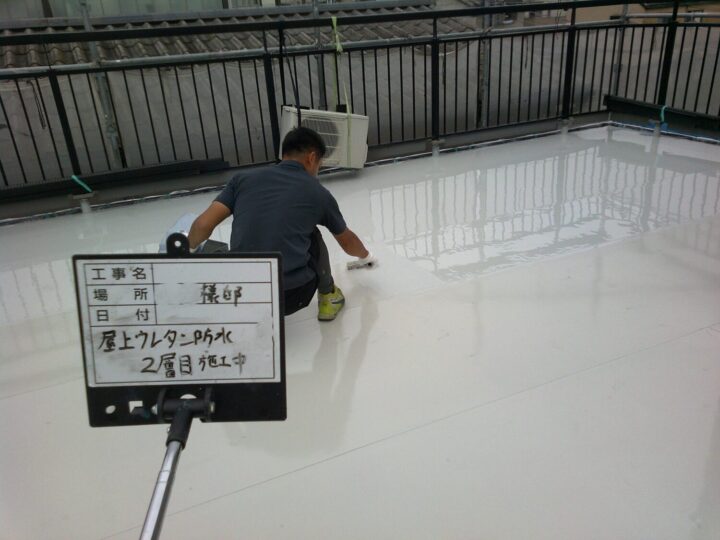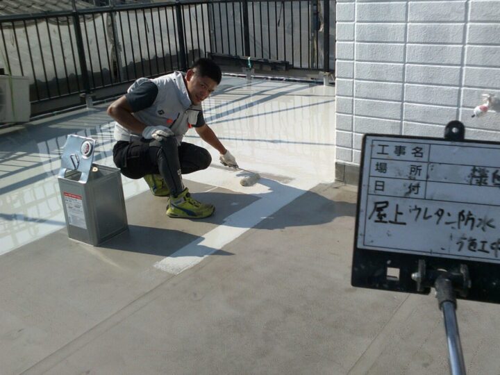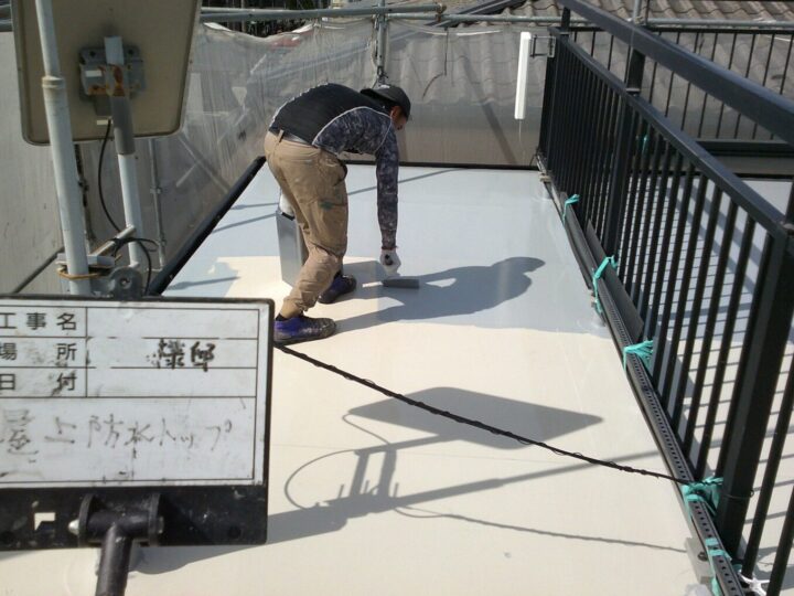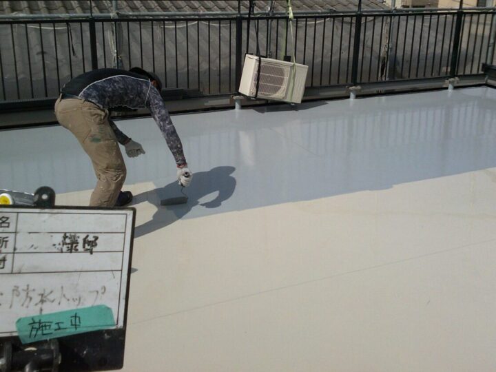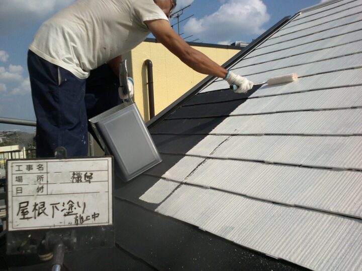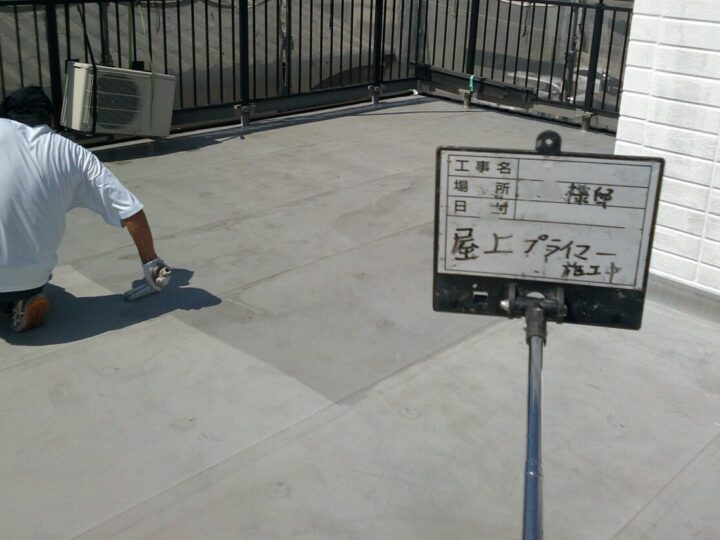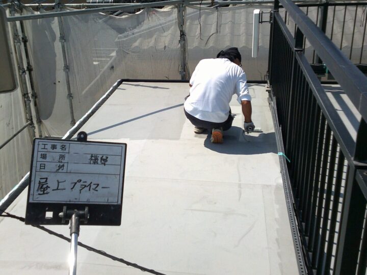 屋根上塗りは美観だけではなく、仕上がりや耐久性建物を保護するという大切な役割があります屋上防水下塗り
