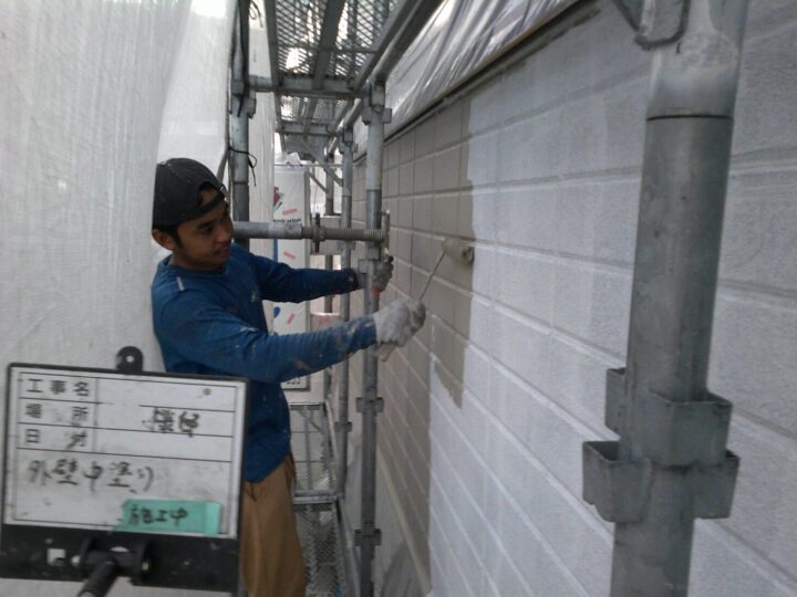 中塗りは塗膜に厚みを持たせることが塗料の機能を長持ちさせる効果があります外壁中塗り