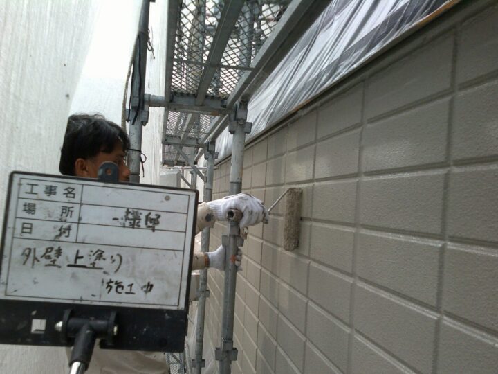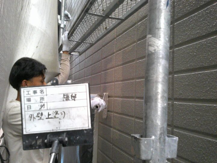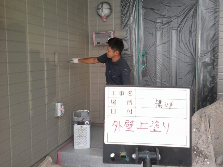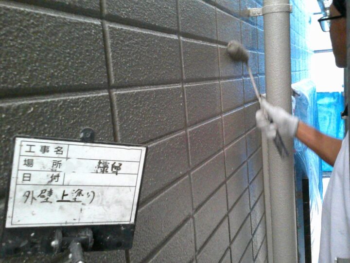外壁塗装は外観を綺麗にするだけでなく建物を保護するという大切な役割があります外壁上塗り