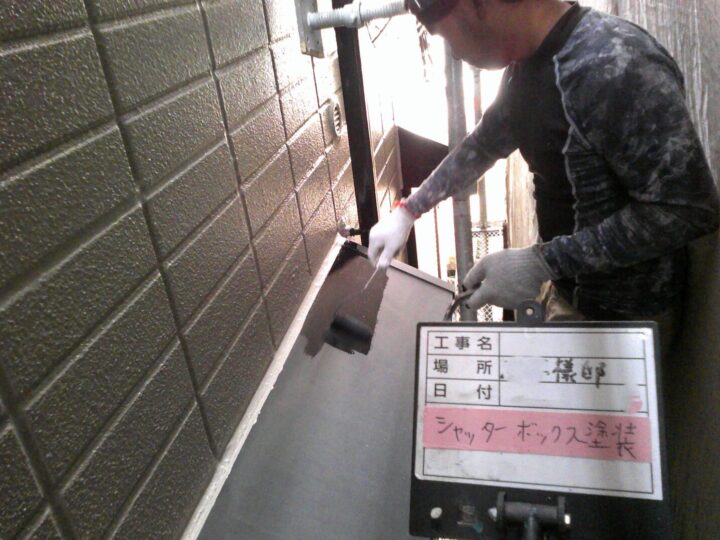 そうすることによって、エアコンを取り替える時外壁もしっかり塗ってあって、外壁のタッチアップが、必要なく仕上がりが綺麗なはずですシャッターボックス塗装