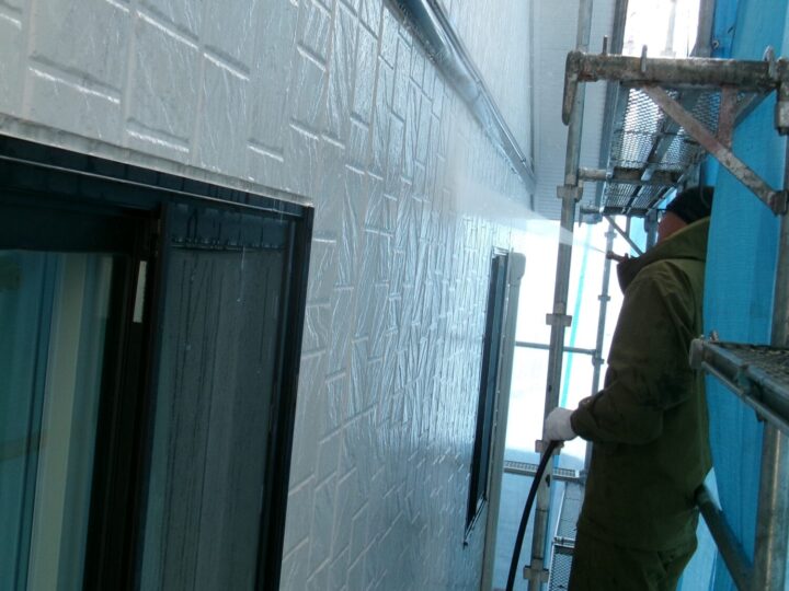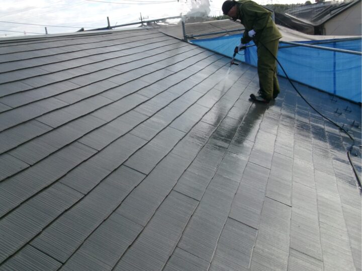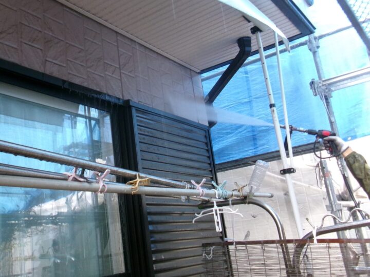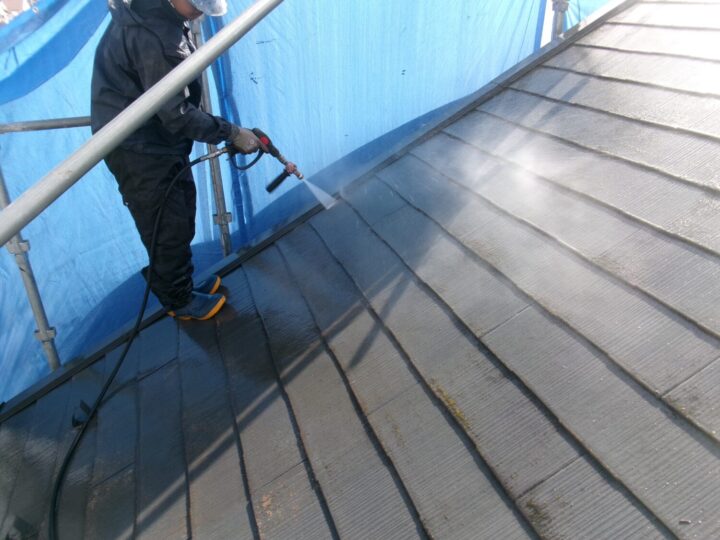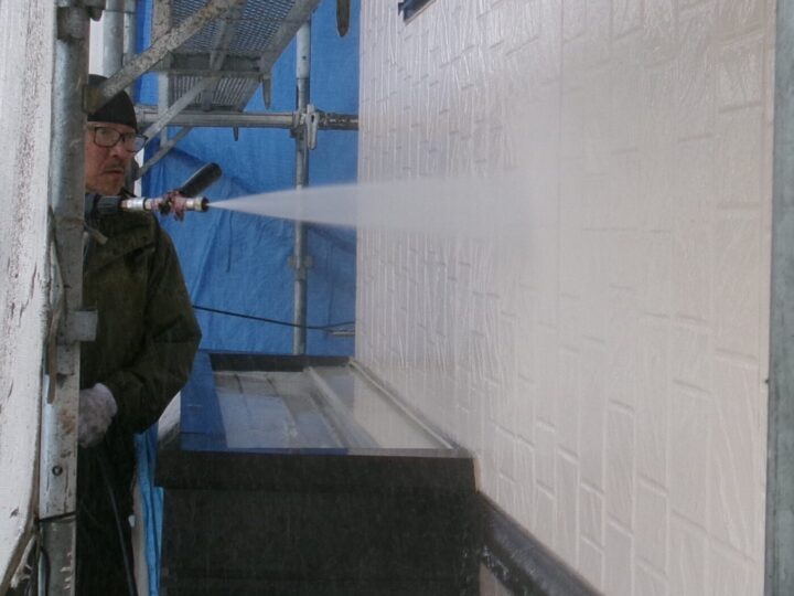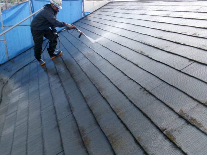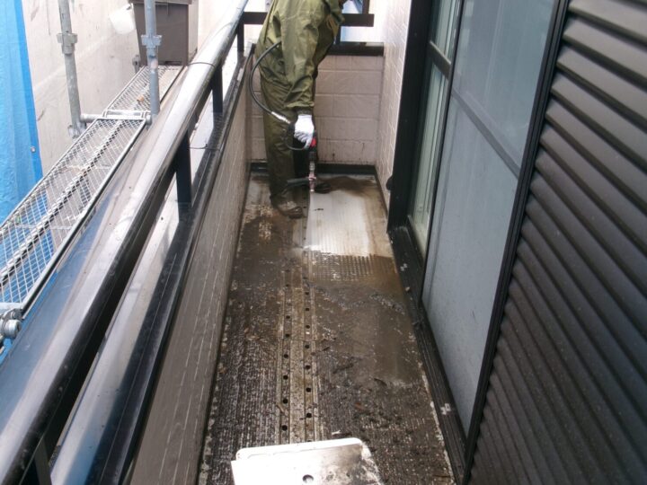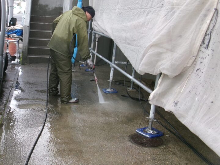 ゴミやコケなどといった物を高圧洗浄機を使って洗い流す作業です