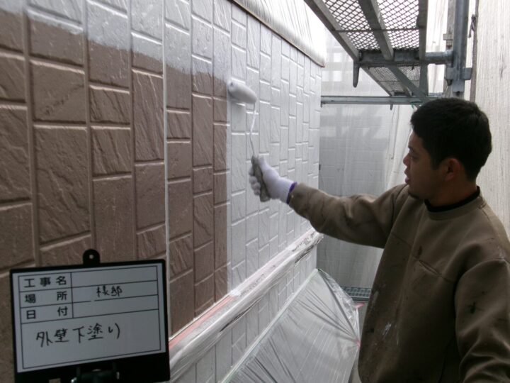 下塗りは外壁塗装の重要な工程です、主な役割は下地と上塗りする塗料との接着するためです