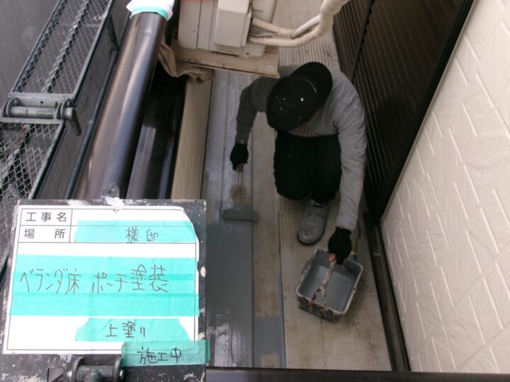 防水層を雨や紫外線から守り、ウレタン防水材の保護を目的です