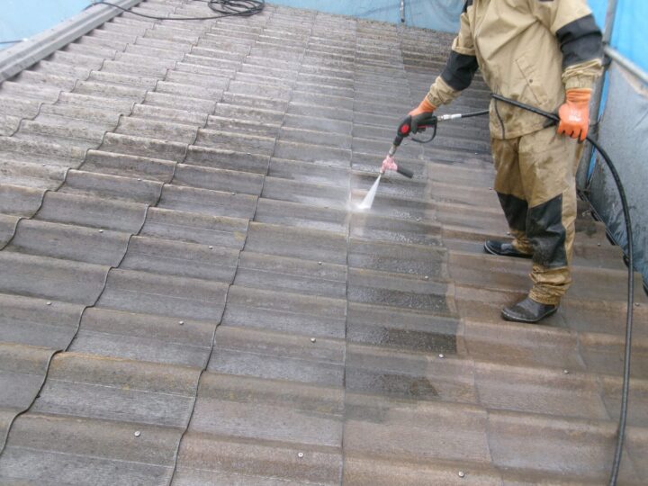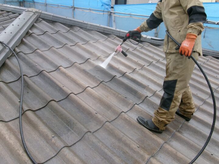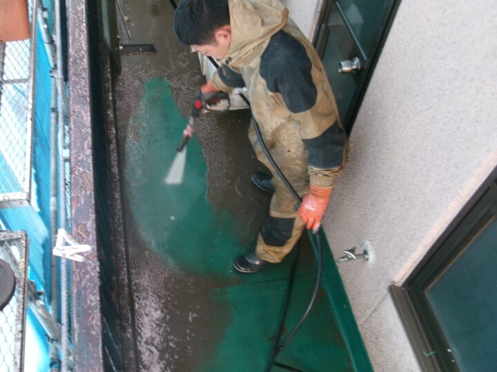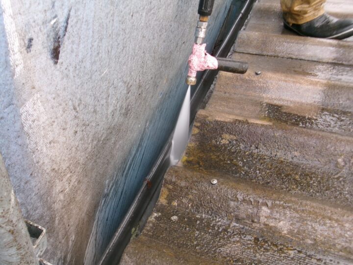ゴミやコケなどといった物を高圧洗浄機を使って洗い流す作業です