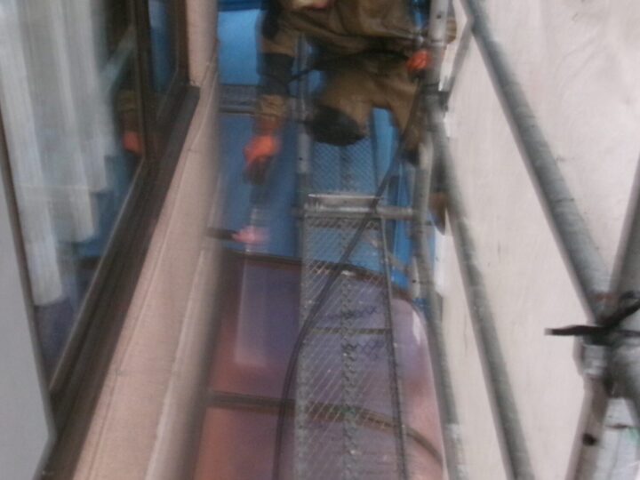 | 施工内容詳細 | 足場→高圧洗浄 外壁→ツタ撤去→手摺ケレン作業→手摺塗装→軒天塗装→破風・雨樋塗装→軒天換気口塗装 フード塗装→クーラーカバー塗装→出窓天板塗装→下塗り→中塗り→上塗り 屋根→下塗り→中塗り→上塗り ベランダ床→シート剝がし→コーキング補修→下塗り(プライマー)→中塗り(ウレタン2回)→上塗り(トップ仕上げ) |