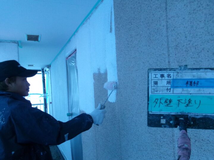 下塗りは外壁塗装の重要な工程です、主な役割は下地と上塗りする塗料との接着するためです